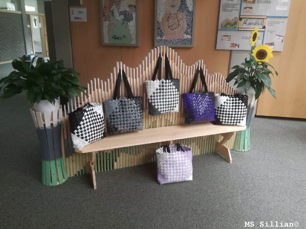 Auch heuer stand wieder das Projekt „Taschen flechten“ für Schülerinnen und Schüler der 4. Klasse zur Auswahl. Zahlreiche Interessierte meldeten sich an, um schöne Taschen im geflochtenen Stil zu fertigen. In drei Doppelstunden wurde der Shopper gefertigt und mit viel Liebe zum Detail zu einer schönen Werksarbeit gemacht. Mit Freude und Stolz können wir dann die fertige Tasche als Shopper oder Accessoire benutzen. Es hat uns allen viel Spaß gemacht. Wir bedanken uns bei Frau Ingrid Außerlechner für die Organisation und hoffen, dass dieses Projekt auch im nächsten Jahr wieder vielen Schülerinnen und Schülern Freude bereitet.