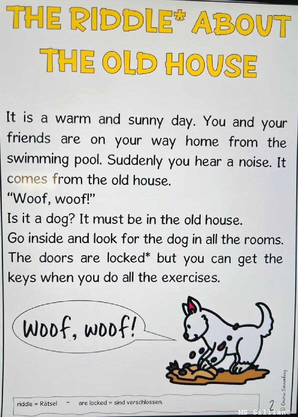 Die SchülerInnen mussten mit Hilfe des ihnen bekannten Programms „Microsoft Teams“ durch ihr Wissen in der englischen Grammatik Codes herausfinden, um sich aus den verschiedenen Räumen der Schule zu befreien. Ziel war es, als Schnellster einen verirrten Hund zu finden.