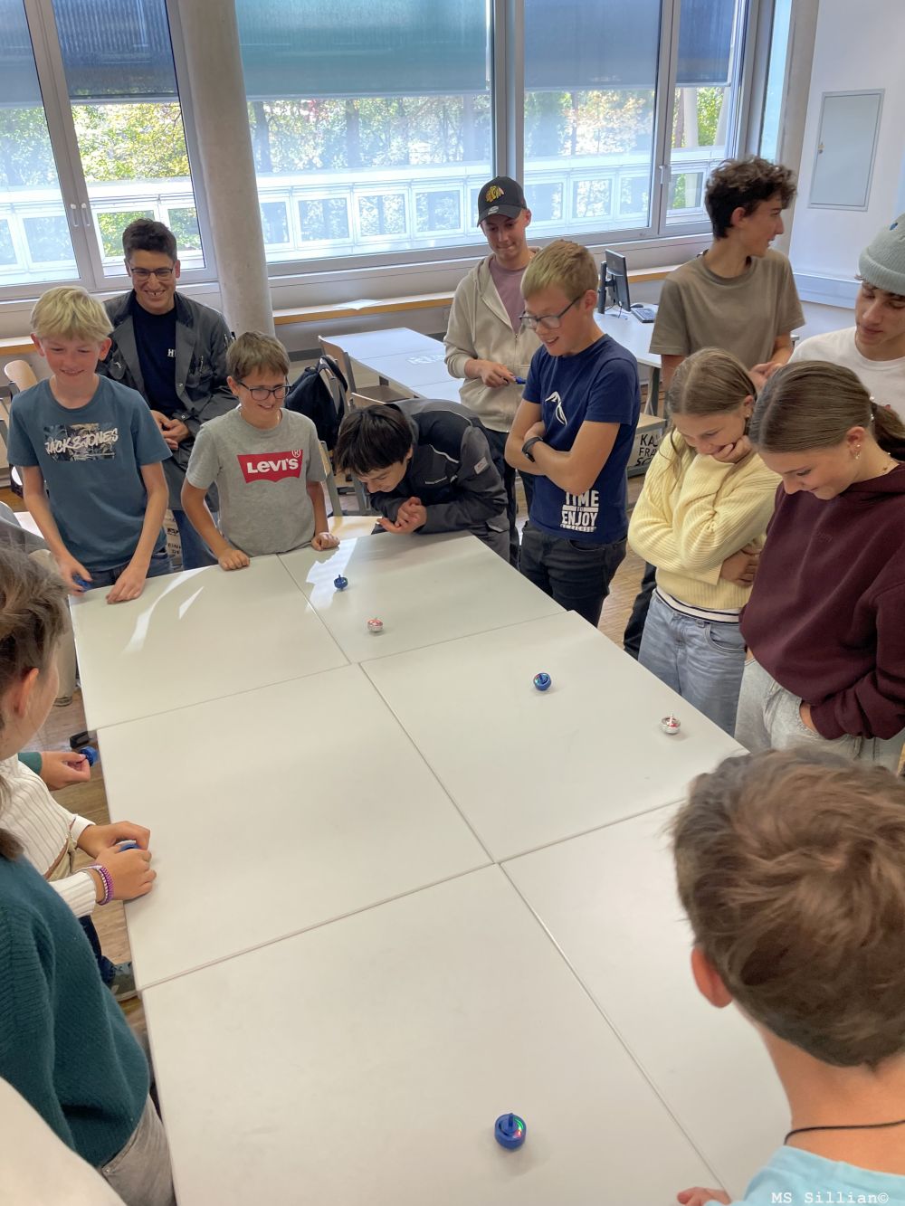 Zum Abschluss des Projekts traten die Kreisel in einem Wettbewerb gegeneinander an – es war spannend zu beobachten, welcher Kreisel sich am längsten drehte. Zwischendurch stärkten sich alle bei einer gemeinsamen Jause und hatten Gelegenheit, ihre Erfahrungen auszutauschen.