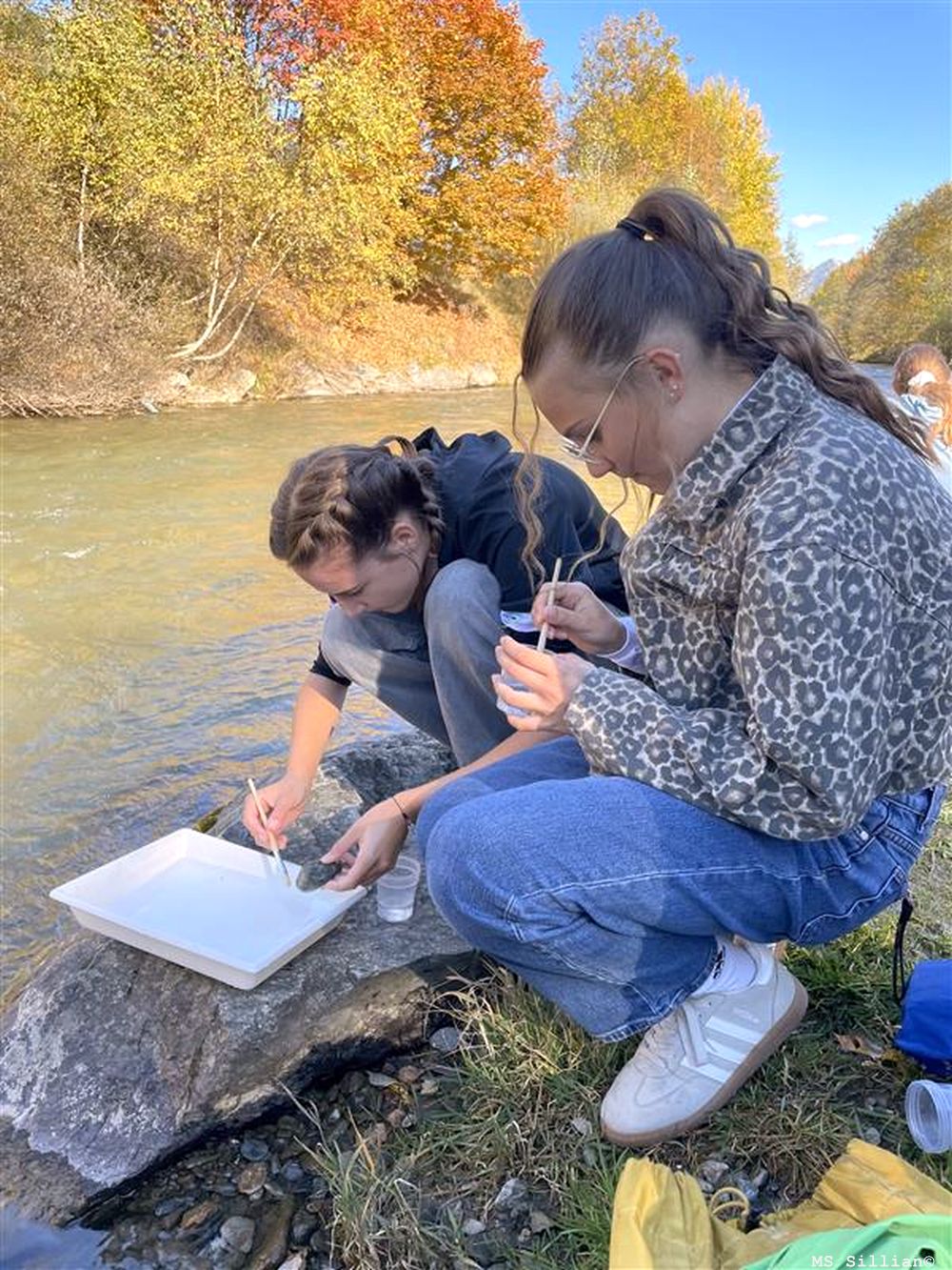 Mit Pinseln und Bechern ausgestattet, wurden unter Steinen im Flussbett spannende Kleinstlebewesen entdeckt – darunter Eintagsfliegen, Köcherfliegenlarven, Steinfliegenlarven, Strudelwürmer und sogar Larven der Kriebelmücke. Diese sogenannten Zeigerorganismen lassen Rückschlüsse auf die Wasserqualität zu – und die war ausgezeichnet!