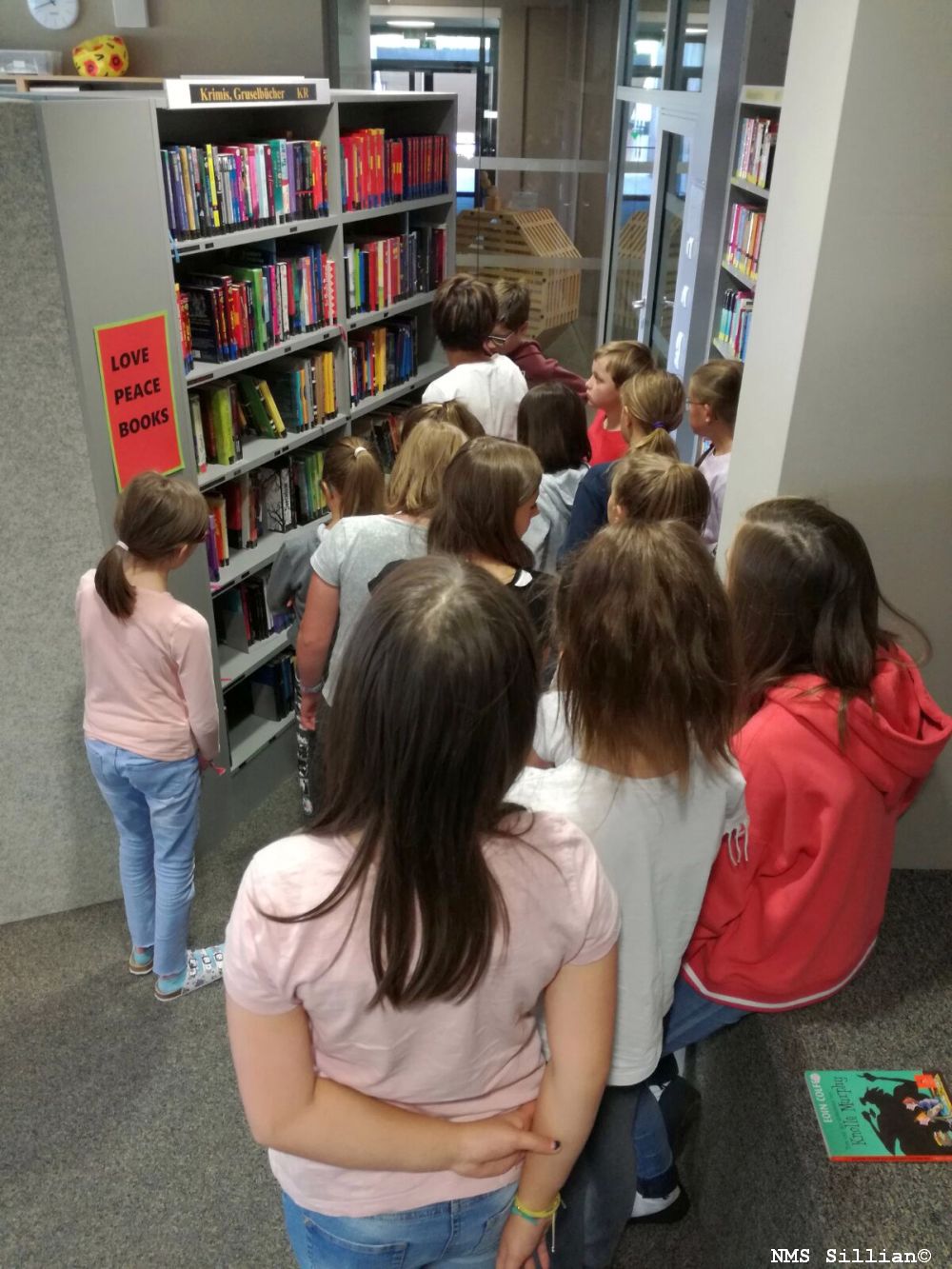 Damit sich unsere Erstklässler in der Bücherei zurechtfinden, bekommen sie bald nach Schulbeginn eine dreistündige Einführung. Sie lernen verschiedene Fachausdrücke wie Signatur, Systematik, den Unterschied zwischen Belletristik und Sachbüchern kennen und üben mit Begeisterung das richtige Suchen und Einordnen von Büchern in die entsprechenden Regale.