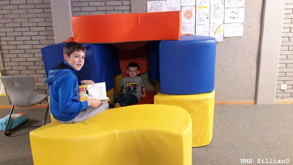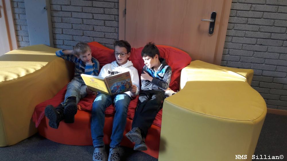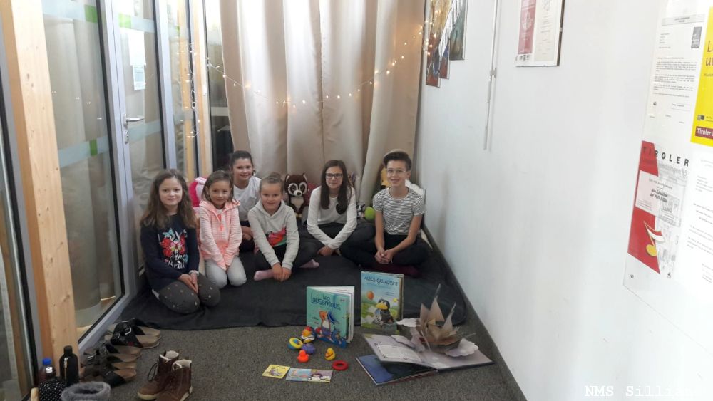 Im Vorfeld wurden passende Bücher ausgesucht und das Vorlesen in Partnerarbeit geübt. Die Volksschulkinder durften dann ein Buch auswählen und sich mit ihrem Lesepaten auf eine liebevoll gestaltete „Leseinsel“ begeben, auf der sie das Buch vorgelesen bekamen.