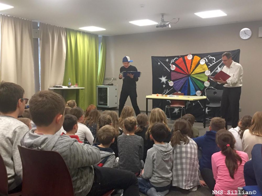 Anlässlich des Tiroler Vorlesetages tourte das Theater Mopkaratz durch Osttirol und begeisterte Schüler/innen der NMS Sillian, der VS Sillian und VS Heinfels mit seinem Lesetheater.