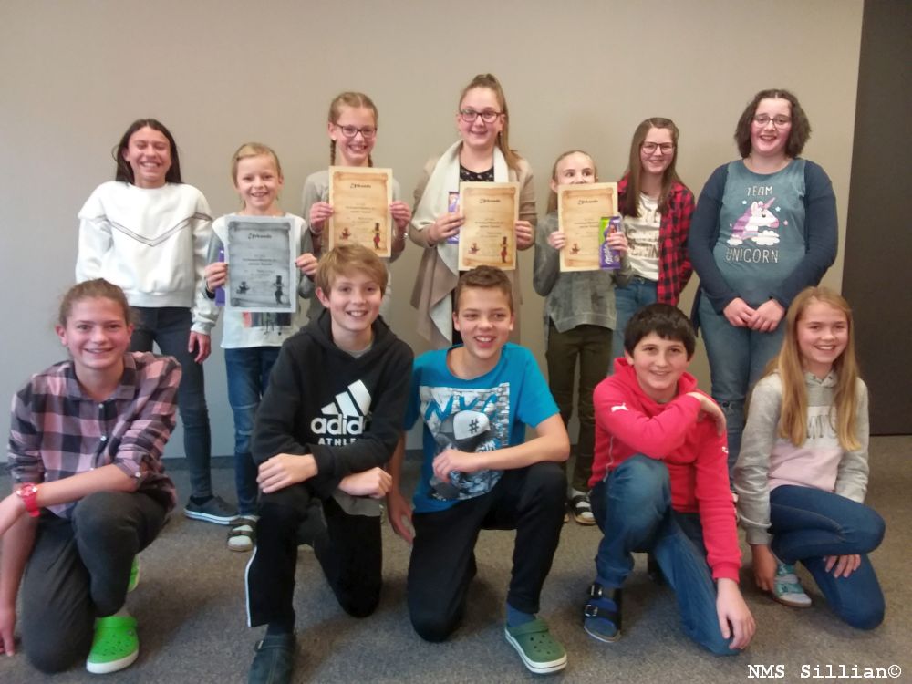 Von den neun besten LeserInnen aus den drei 4. Klassen erlas sich Platz 1 Gianfrate Giulia, den 2. Platz teilen sich mit derselben Punktezahl Aichinger Franziska und Hofmann Elena.