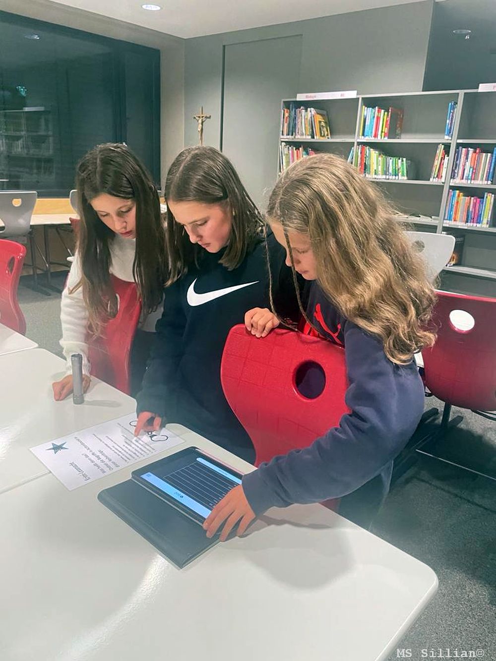 Eine etwas andere Art von Schnitzeljagd wurde den Kindern der dritten Klassen als Projekt geboten. Zuerst luden sie die App „Action Bound“ auf ihrem Tablet herunter, dann wurden sie mit Taschenlampen ausgestattet, mit deren Hilfe sie durch das dunkle Schulhaus geisterten und knifflige Rätsel lösten. Für jede Lösung der insgesamt 10 Stationen erhielten sie Punkte. Kombinationsfähigkeit und logische Denkweise waren dabei gefragt. Sie scannten QR-Codes, ordneten Fachausdrücke der Polizeisprache ihren Bedeutungen richtig zu, spielten und filmten einen Sketch, fotografierten eine bestimmte Seite eines bestimmten Krimi-Buches, entlarvten den Dieb des Schulskeletts und lösten noch weitere Kriminalfälle. Die Kinder waren mit Eifer dabei und gespannt, welches Team bei der Auflösung der Rätsel am Ende die meisten Punkte erhielt. Die Sieger wurden schließlich mit einem Hausübungsgutschein belohnt.