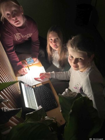 Die Schule verwandelte sich in ein Ermittlungszentrum voller Hinweise, die mit Hilfe von Taschenlampen in der stockfinsteren Schule gefunden werden mussten.