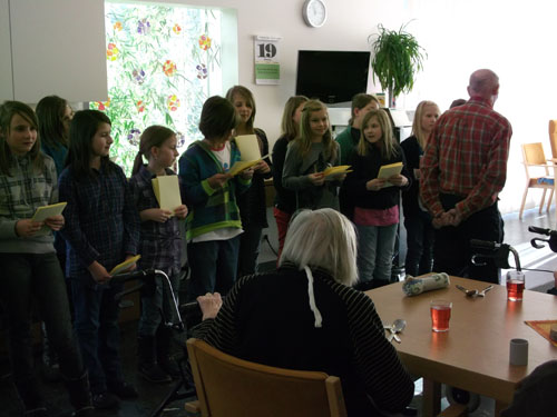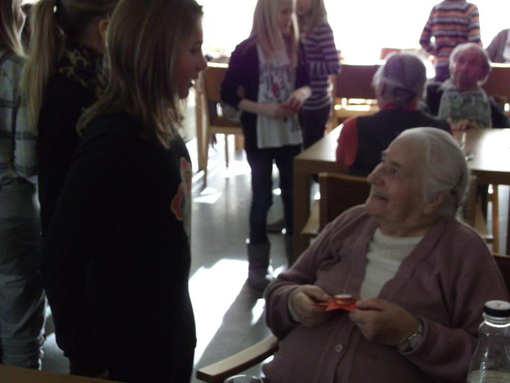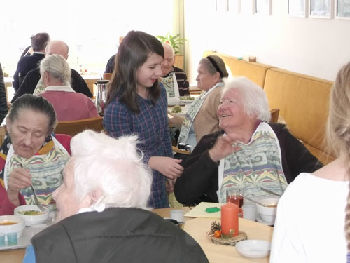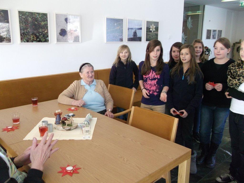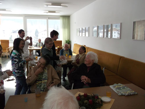 Abwechselnd besuchen die Schüler/innen einmal in der Woche, im Religionsunterricht, alte Menschen im Altersheim Sillian, um ihnen „15 Minuten Advent“ zu schenken und somit etwas Freude zu bringen.