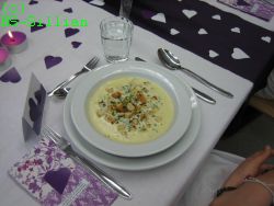 Knoblauchcremesuppe Schweinemedaillons im Speckmantel