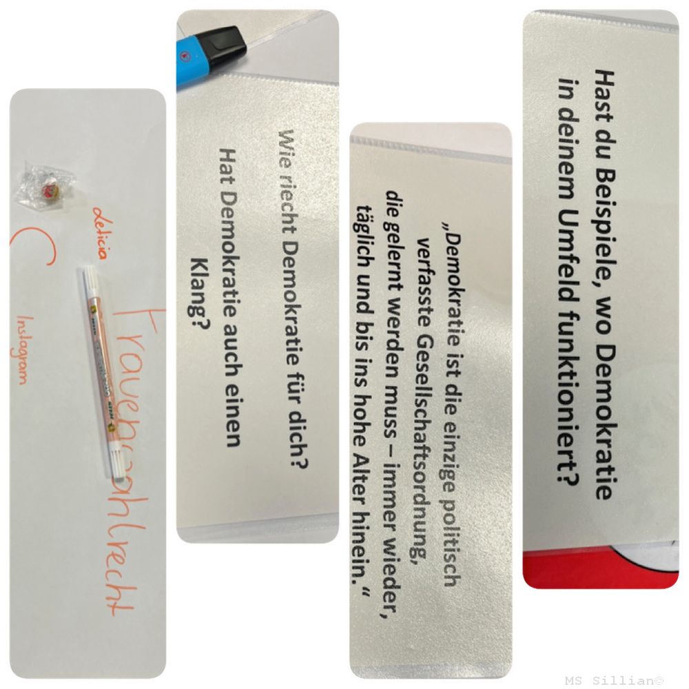 Nach der Begrüßung und einer kleinen Einführung wurden die SchülerInnen schulübergreifend in kleine Gruppen eingeteilt. In ihren Gruppen gingen sie den Fragen „Was bedeutet Demokratie für mich ganz persönlich?“ und „Welche Rolle hat Demokratie in meinem Alltag?“ nach. Weiters wurde auch darüber diskutiert, was es brauchen würde, damit sich die SchülerInnen selbst engagieren.