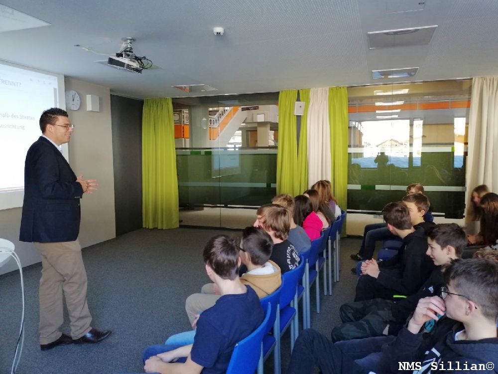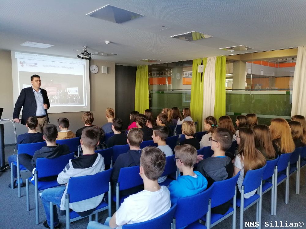 Was regt sich in der Euregio? Diese und andere Fragen beantwortete am 27.1.2020 Mag. Matthias Fink im Rahmen eines Projektes für die 4. Klassen in der NMS-Sillian.
