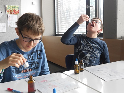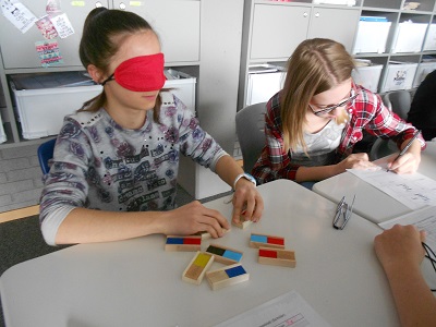 Das Ziel einer weiteren Station war, sich einmal völlig auf die verschiedenen Sinne zu konzentrieren. Dabei mussten wir verschiedene Gerüche erkennen, Geräusche richtig zuordnen, mittels Tasten ein Domino zusammenstellen usw.