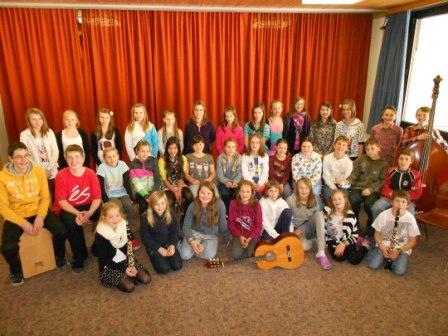 Ein musikalisch abwechslungsreiches Programm erfreute die zahlreichen Zuhörer, welche die Beiträge mit viel Applaus bedankten. Der Schülerchor brachte die Lieder „Lollipop“, „Singing“, „Ein Kompliment“ und „Hoi, lustig mir Knechtlar“ mit viel Schwung dar. Begleitet wurde der Chor durch Schüler der Klasse  4m (Keyboard, Cajon), aber auch von den Musiklehrern der beiden Klassen, Peter Pedarnig (Kontrabass) und Mair Simone (Gitarre), welche auch die Stücke mit den Schülern und Schülerinnen einstudierten. Peter Pedarnig fungierte auch als Sprecher und fand passende Worte zu den einzelnen Darbietungen. Dem Chor, den Instrumentalisten und allen Helfern ein großer Dank und Gratulation für die gelungene Vorstellung!