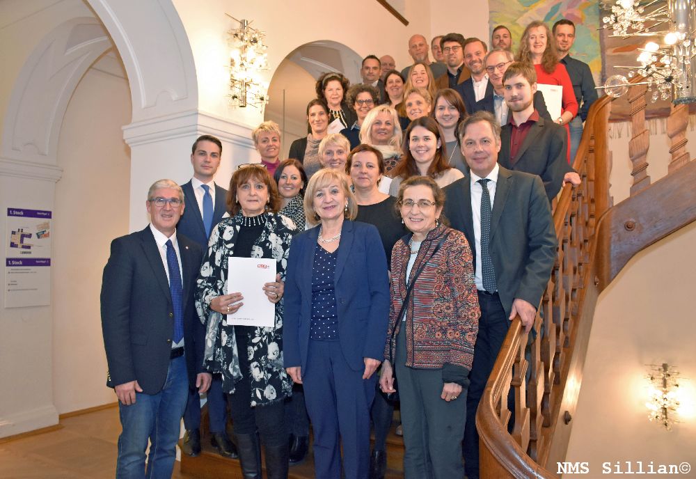 Insgesamt 22 Tiroler Schulen wurden mit dem Gütesiegel von der Bildungs- und Landesrätin Beate Palfrader am 21. Jänner ausgezeichnet. Die Auszeichnung erhalten Schulen, die ihre Schülerinnen und Schüler individuell und kompetent bei ihrer Berufsfindung unterstützen. Neben Betriebsbesichtigungen, Fachvorträgen, Stärken- und Schwächenanalyse sowie individuellen Schnuppertagen bietet auch die NMS Sillian unterschiedlichste Interessenstestungen und Analysen in Kooperation mit der Schulpsychologie Lienz und den Sozialpartnern wie der Arbeiterkammer und dem AMS an.