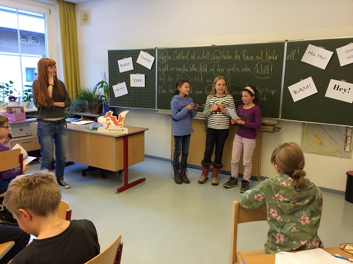 BOAH! Was war das für ein tolles Erlebnis, als die Kids innerhalb von zehn Minuten einen modernen Rap kreierten. „… Am Berg da wohnt ein Zwerg, der Zwerg, der ist nicht dumm, er singt sehr gerne BUMM BUMM BUMM…“