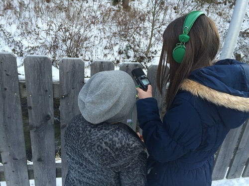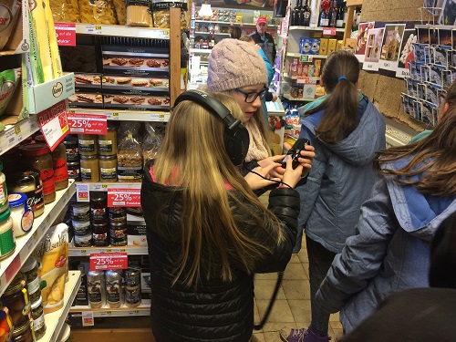 Außervillgraten hatte an diesem Vormittag außerdem eine höchst interessante Geräuschkulisse zu bieten. Mit Aufnahmegeräten und Kopfhörern ausgestattet, schlenderten die Schüler und Schülerinnen durch das Dorf. Neben dem Piepsen an der Geschäftskasse waren auch eine lustige Geräusche, wie die tiefe Stimme des Skilehrers Ossis, beim Endergebnis zu hören.