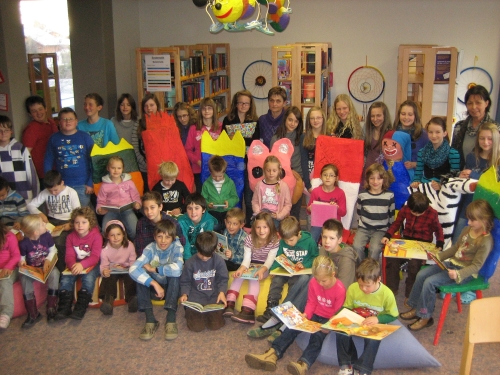 Zum Abschluss dieses Projekts wurde die erste Klasse der Volksschule Sillian zu einer Vorlesestunde eingeladen. Im ganzen Schulhaus verteilt waren die Leseplätze, wo jeweils ein Hauptschulkind einem Volksschulkind eine Geschichte vorlas. Begeistert hörten die Kleinen den Großen zu. So bekam jedes Volksschulkind mehrere Geschichten vorgelesen und viel zu schnell ging diese Lesestunde vorbei.