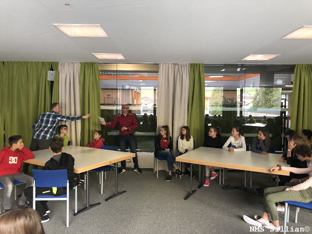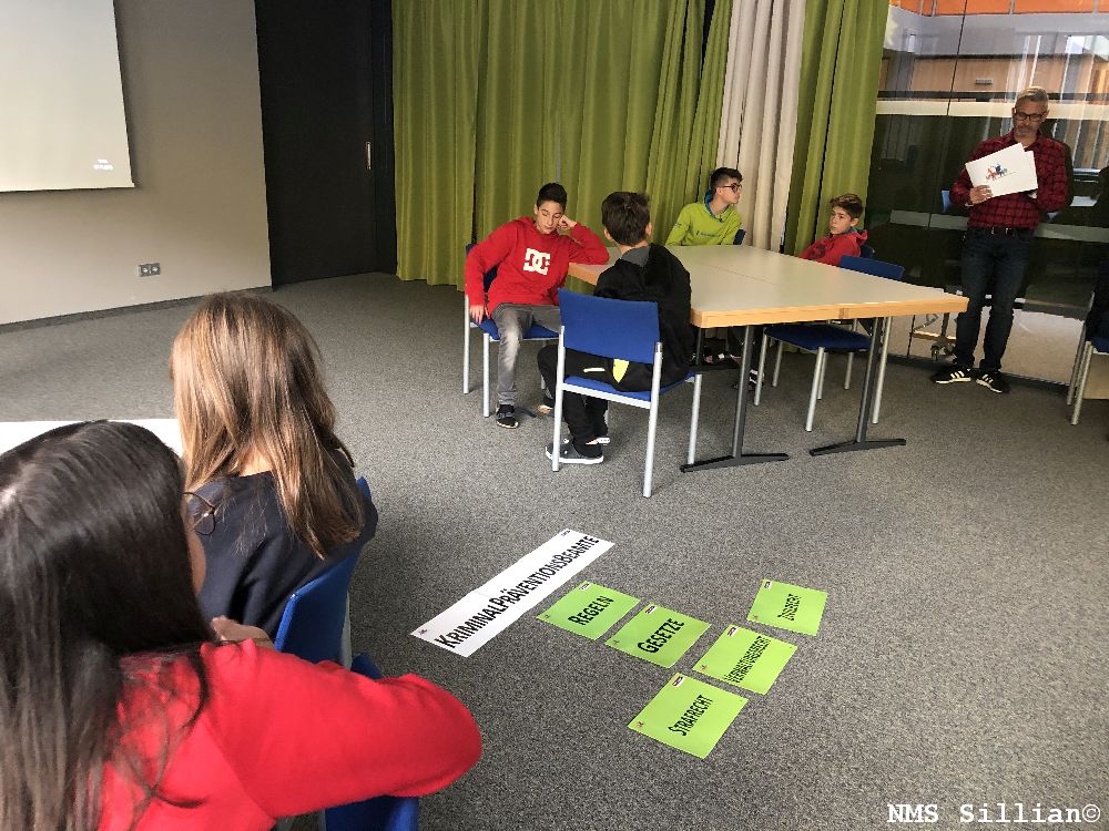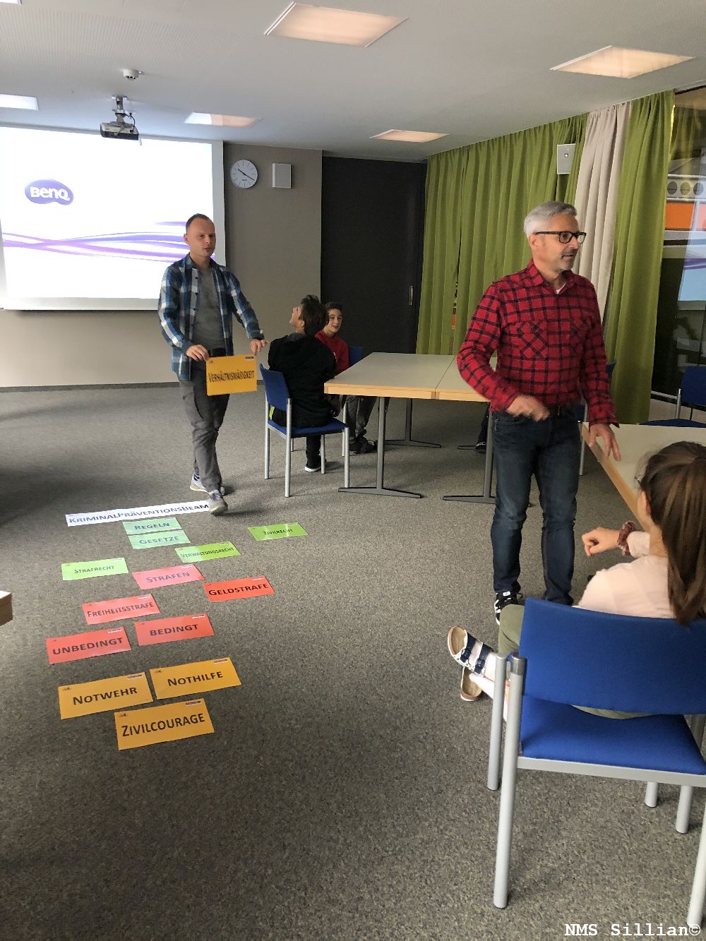 Zwei Kriminalbeamte der Polizeiinspektion Lienz vermittelten zunächst kurz die Grundlagen des österreichischen Rechtssystems und erarbeiteten wesentliche Begriffe, wie beispielsweise Strafmündigkeit, bedingte Strafe oder Notwehr anhand von Fallbeispielen. In einer weiteren Unterrichtseinheit stand der Zusammenhang zwischen Alter und Recht im Mittelpunkt. Wer darf wie lange ausgehen? In welchem Alter dürfen Jugendliche Alkohol konsumieren?  Gibt es für den Zugang zum Internet eine Altersbegrenzung? Es zeigte sich, dass das Wissen der Schülerinnen und Schüler zu dieser Thematik teilweise noch große Lücken aufweist.