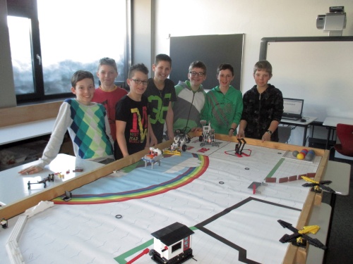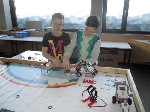 Für den Wettbewerbstisch werden Fahrzeuge gebaut. Mit Ihnen werden durch entspechende Programmierung Objekte auf dem Übungstisch gesammelt und an einen vorgegebenen Ort zurückgebracht.