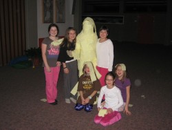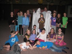 Plötzlich – zwölf Glockenschläge – die Aufregung war groß, die Geisterstunde hatte geschlagen. Mit viel Gejohle wurden tatsächlich zwei echte Gespenster überrumpelt und gefangen genommen. Ein mitternächtliches Ballspiel im Turnsaal sollte für die nötige Müdigkeit sorgen, verfehlte seine Wirkung aber gänzlich. Nach einer sehr kurzen Schlafphase, traf man sich bleich und mit Ringen unter den Augen beim Frühstückstisch und prahlte damit, wer am wenigsten geschlafen hat…