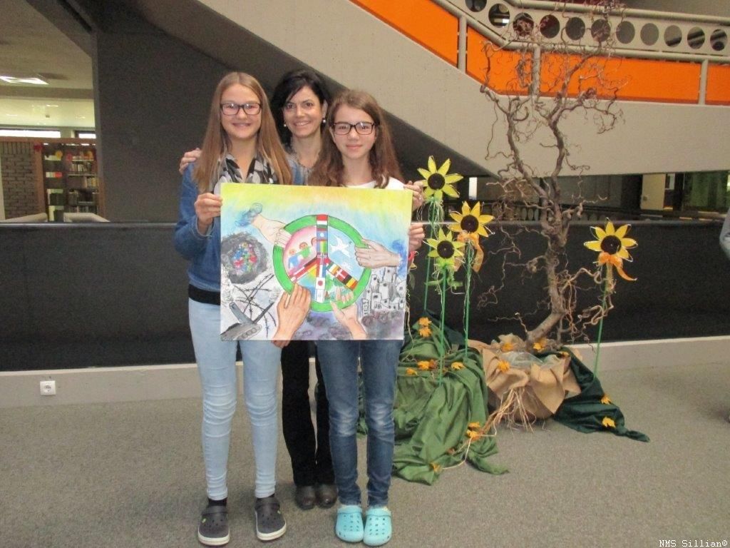 Bereits zum zweiten Mal beteiligten sich die Schülerinnen der 4m-Klasse am Friedensplakatwettbewerb des Lionsclub-International. „Frieden teilen“ lautete das Thema heuer. In einigen intensiven Zeichenstunden entwarfen die Mädchen Plakate und interpretierten auf ihre Art das Thema in Bildern.