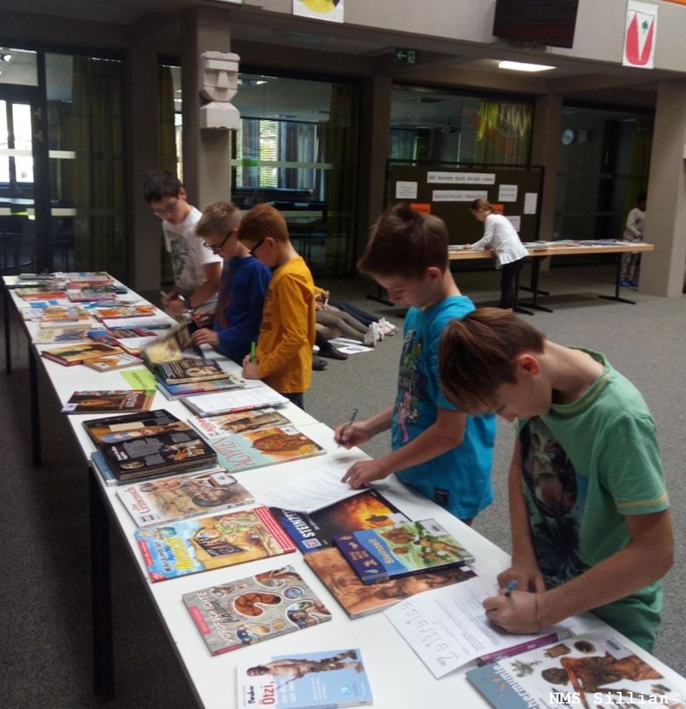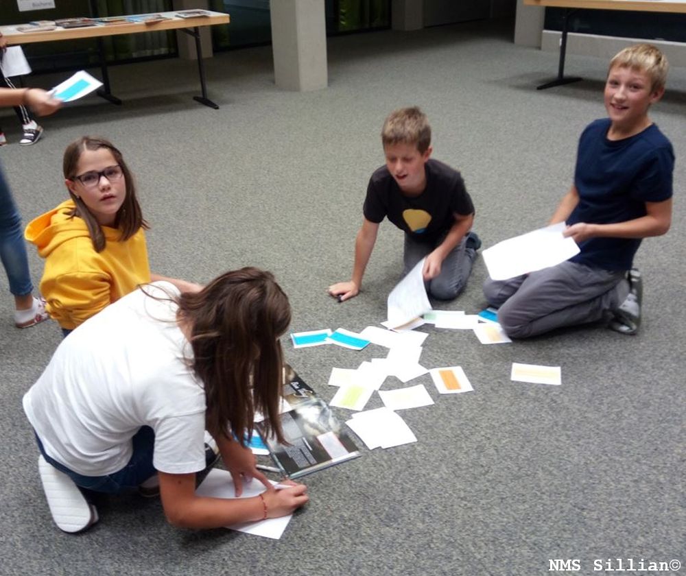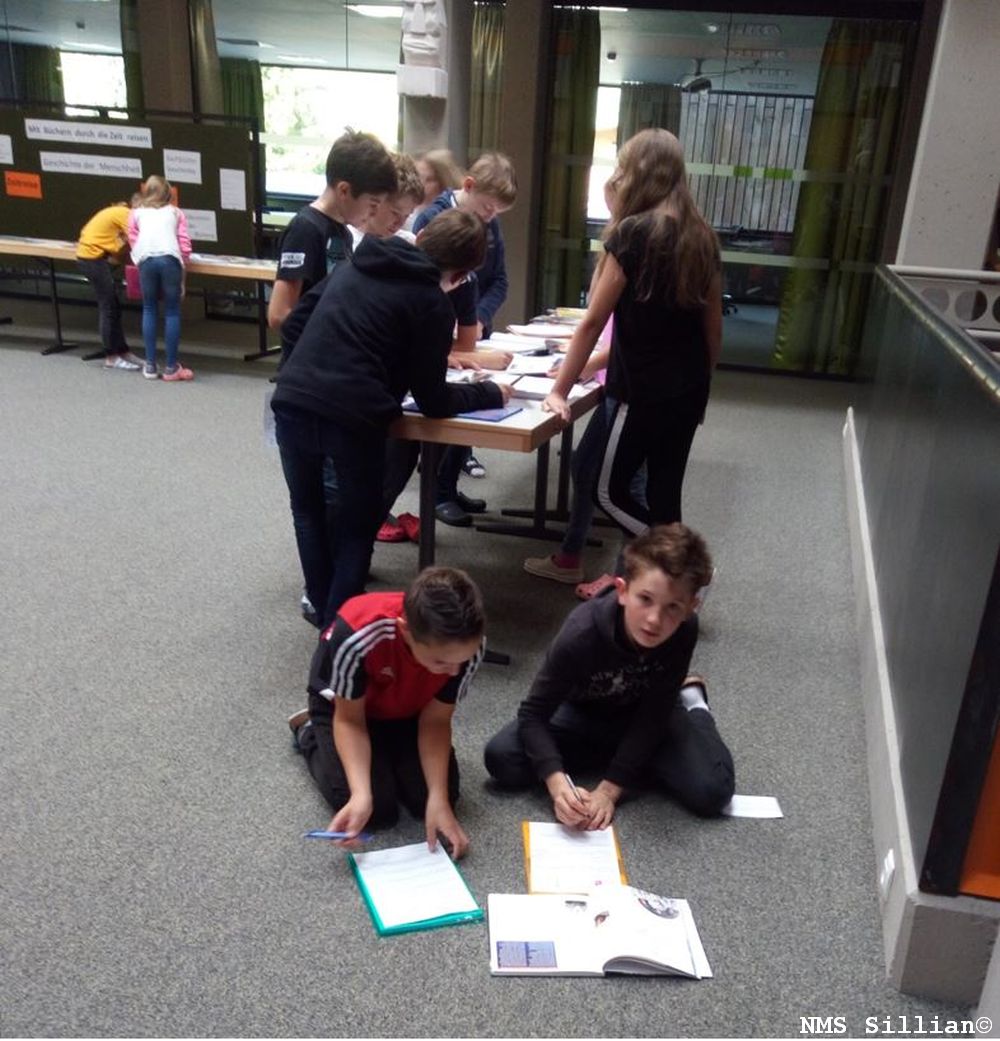 Um sich vorstellen zu können, was wann passiert ist, haben wir Bücher den einzelnen Epochen zugeordnet. Nun ist klar ersichtlich: Ötzi gehört in die Urgeschichte, Pyramiden gab es in den Frühen Hochkulturen, Ritter ritten im Mittelalter durch Europa, Amerika wurde zu Beginn der Neuzeit entdeckt und am Mond landeten die Menschen in der Jetztzeit. Außerdem wurde versucht, sich mit Inhaltsverzeichnissen in Büchern zu orientieren und so Fragekarten richtig zu beantworten.