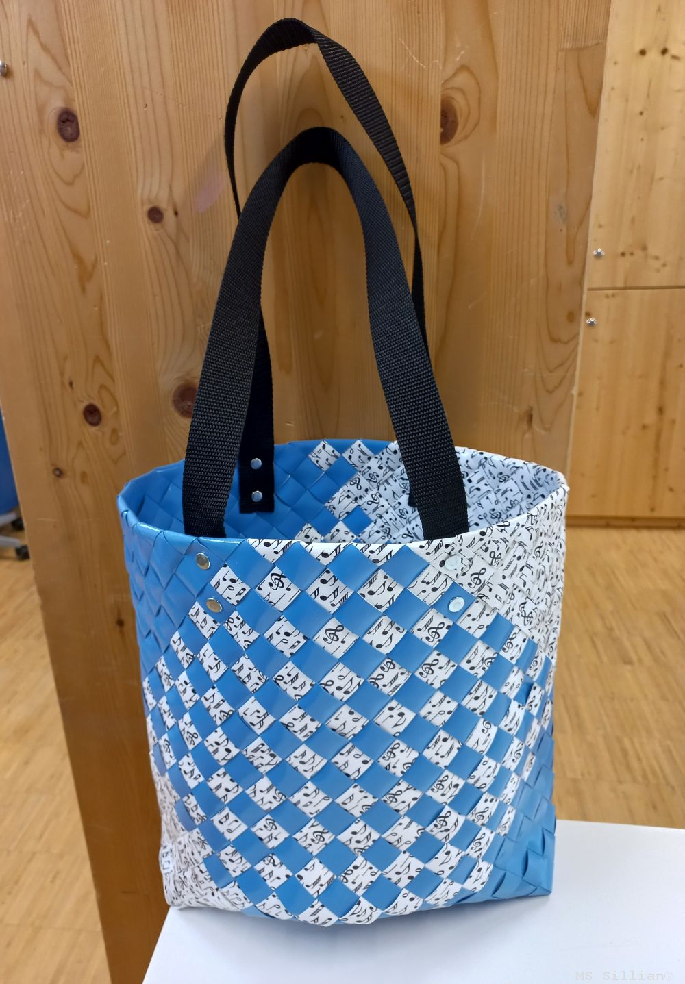 Am 24.4.2024 trafen wir uns das erste Mal, um unsere Tasche anzufertigen. Zuerst hatten wir alle noch ein paar kleine Probleme mit dem Flechten, doch mit Hilfe von Frau Lehrerin Ingrid Außerlechner haben wir es alle toll gemeistert. Wir haben bis 17 Uhr durchgearbeitet. Mit viel Vorfreude auf die Taschen ging es dann am 8. und 23. Mai weiter. Als wir 4 Mädels dann vor unseren Taschen standen, konnte man uns den Stolz ansehen.