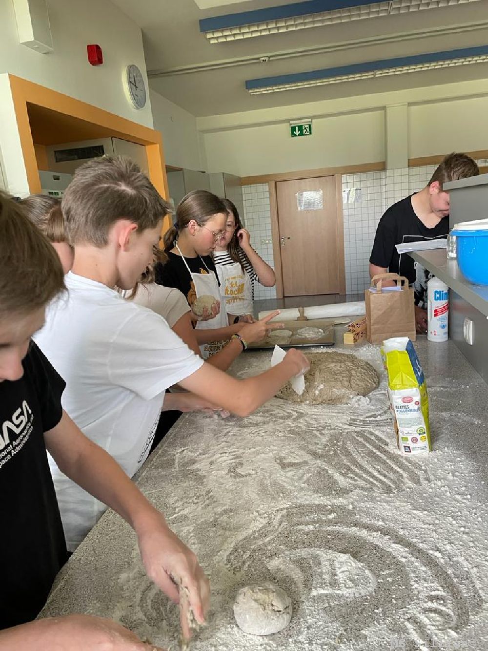 durften unseren eigenen Butter herstellen und verkosteten Molke. Außerdem lernten wir, wie Brot