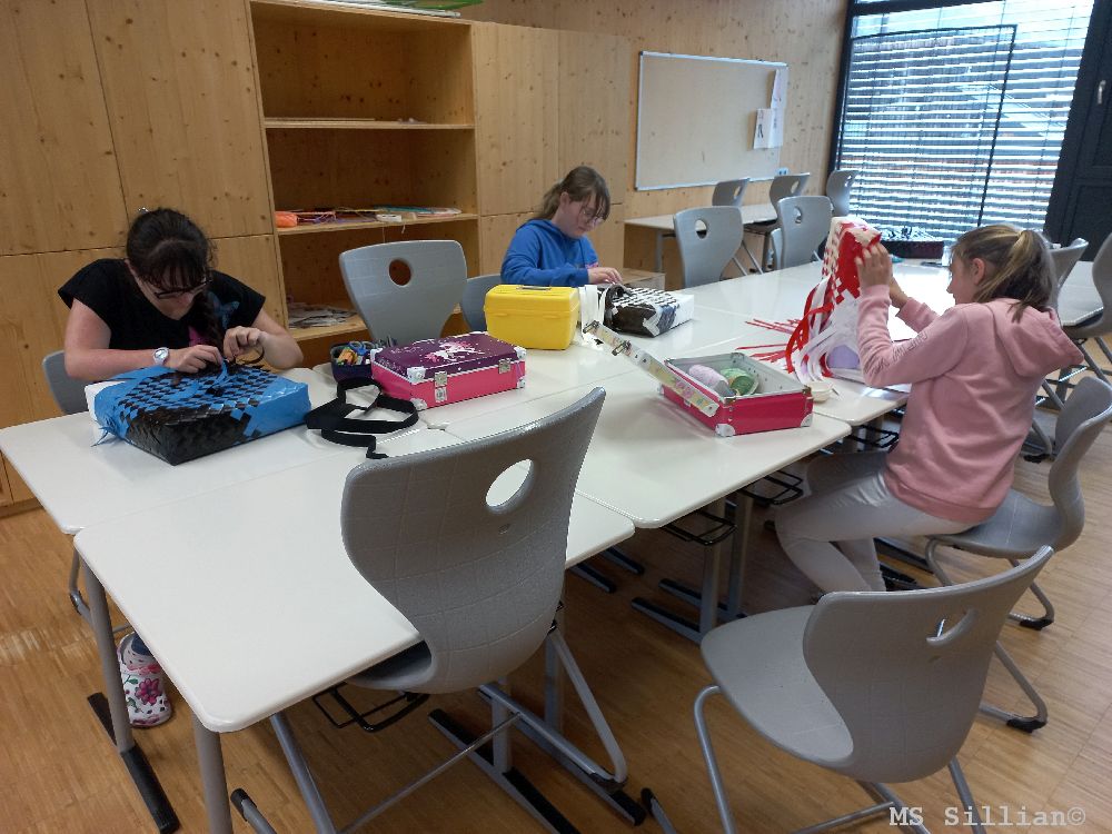 Nachdem wir in den Werkstunden die Taschen kreiert hatten, nahmen ein paar von uns noch am Projekt teil, um noch eine zusätzliche zu machen. Dieses Mal fiel uns die Arbeit schon etwas leichter. Es waren sehr nette und unterhaltsame Nachmittage und wir hatten alle sehr viel Spaß.