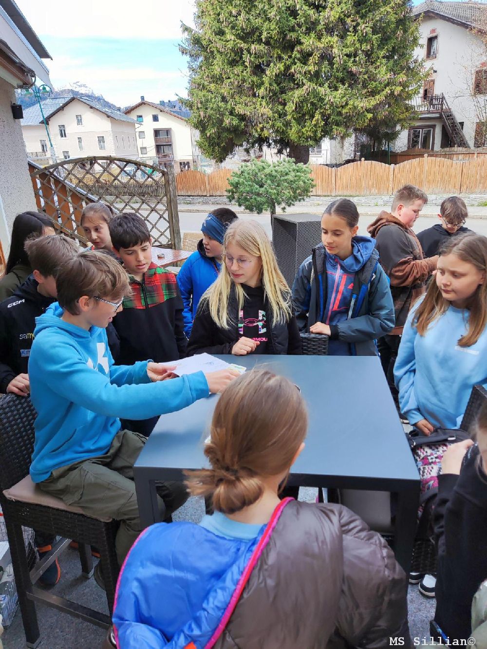 Am Vormittag starteten wir mit einem Dorf-Rallye duch Toblach. Wir sahen uns die Kirche und noch viele weitere Sehenswürdigkeiten in Toblach an. Wir lernten auch die Bewohner des Dorfes kennen, weil wir Straßenumfragen durchführten. Nach der circa drei stündigen Dorf-Rallye gingen wir wieder zurück in die MS Toblacher und bekamen dort Lasangne Mit Salat zum Mittagessen und als  Nachspeise gab es noch ein leckeres Eis.